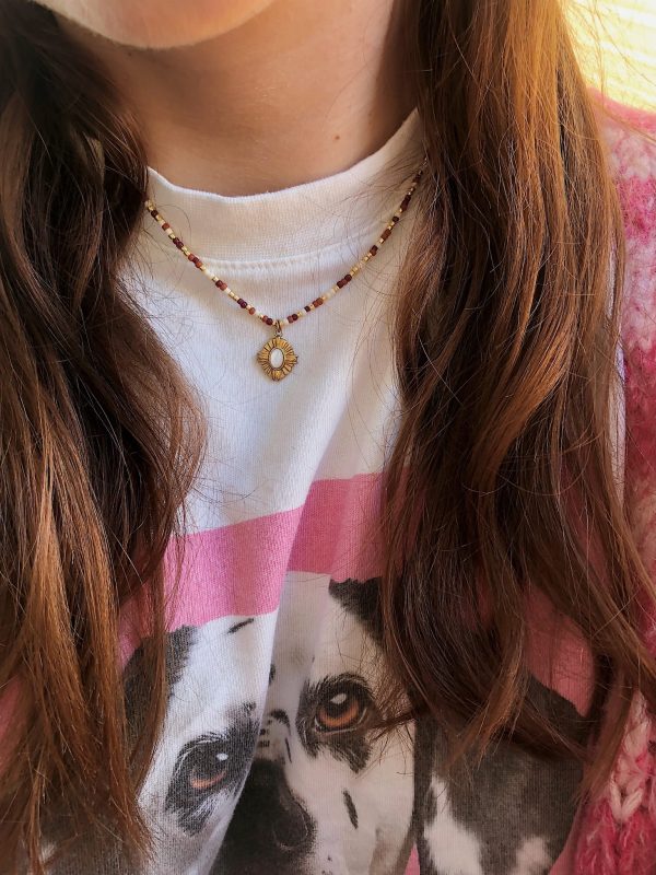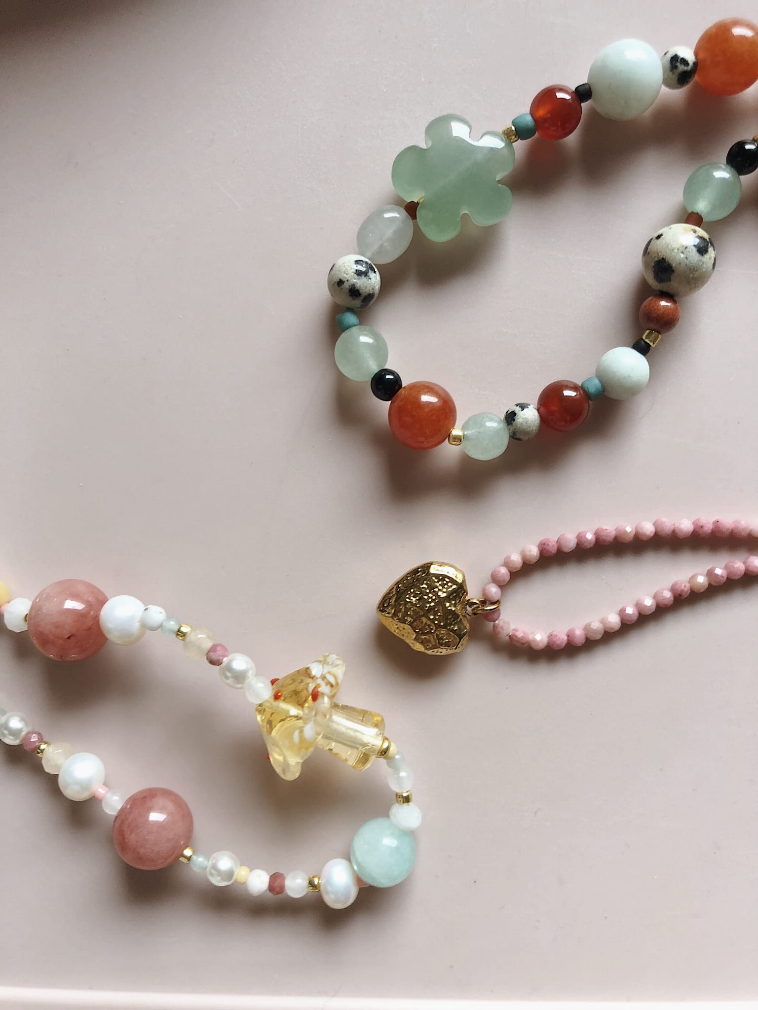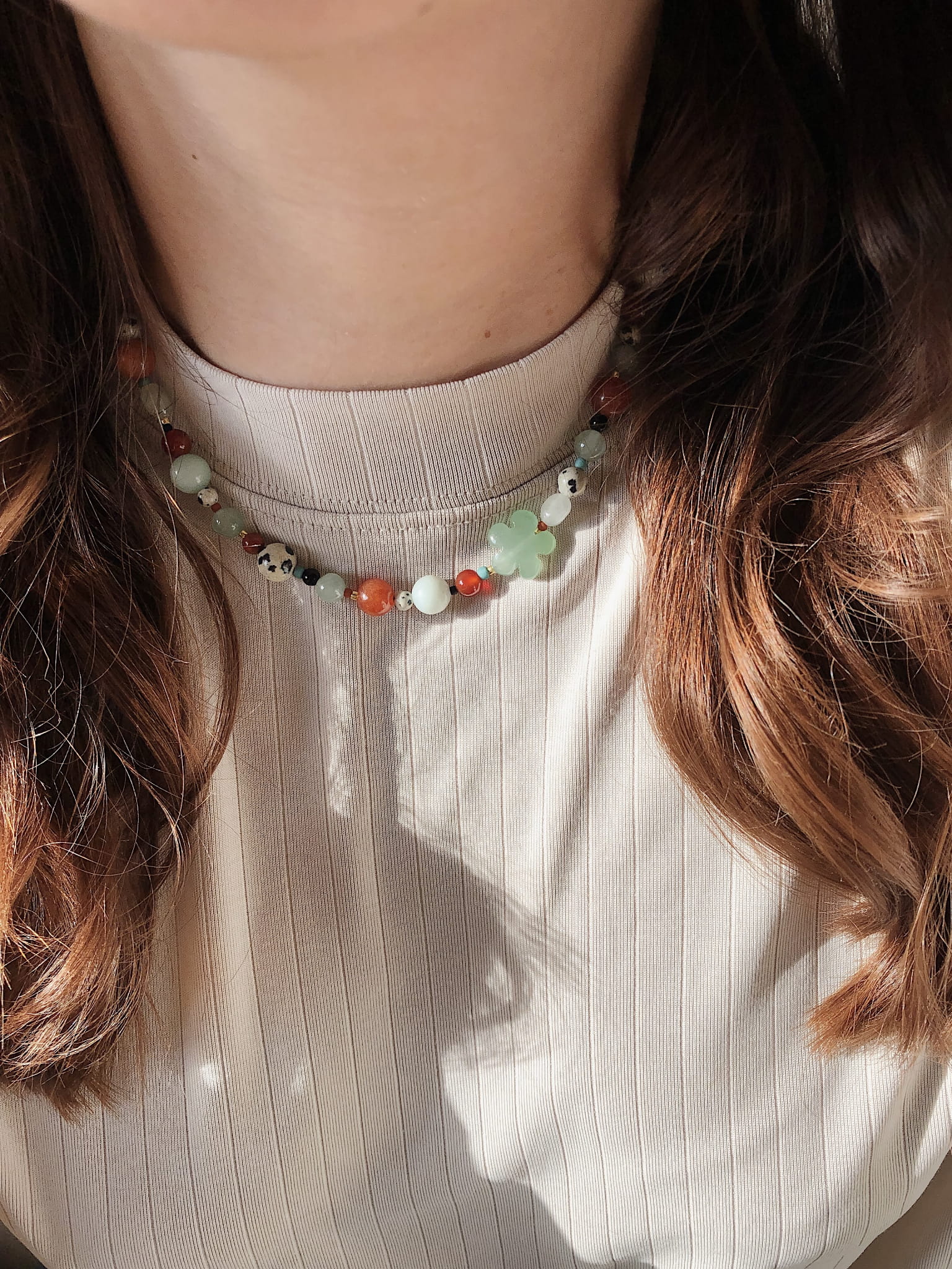Idealny na jesień naszyjnik z mieszanki kamieni naturalnych oraz koralików szklanych.