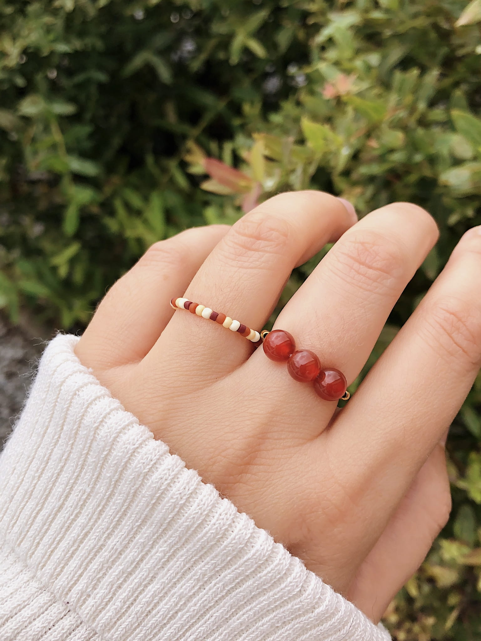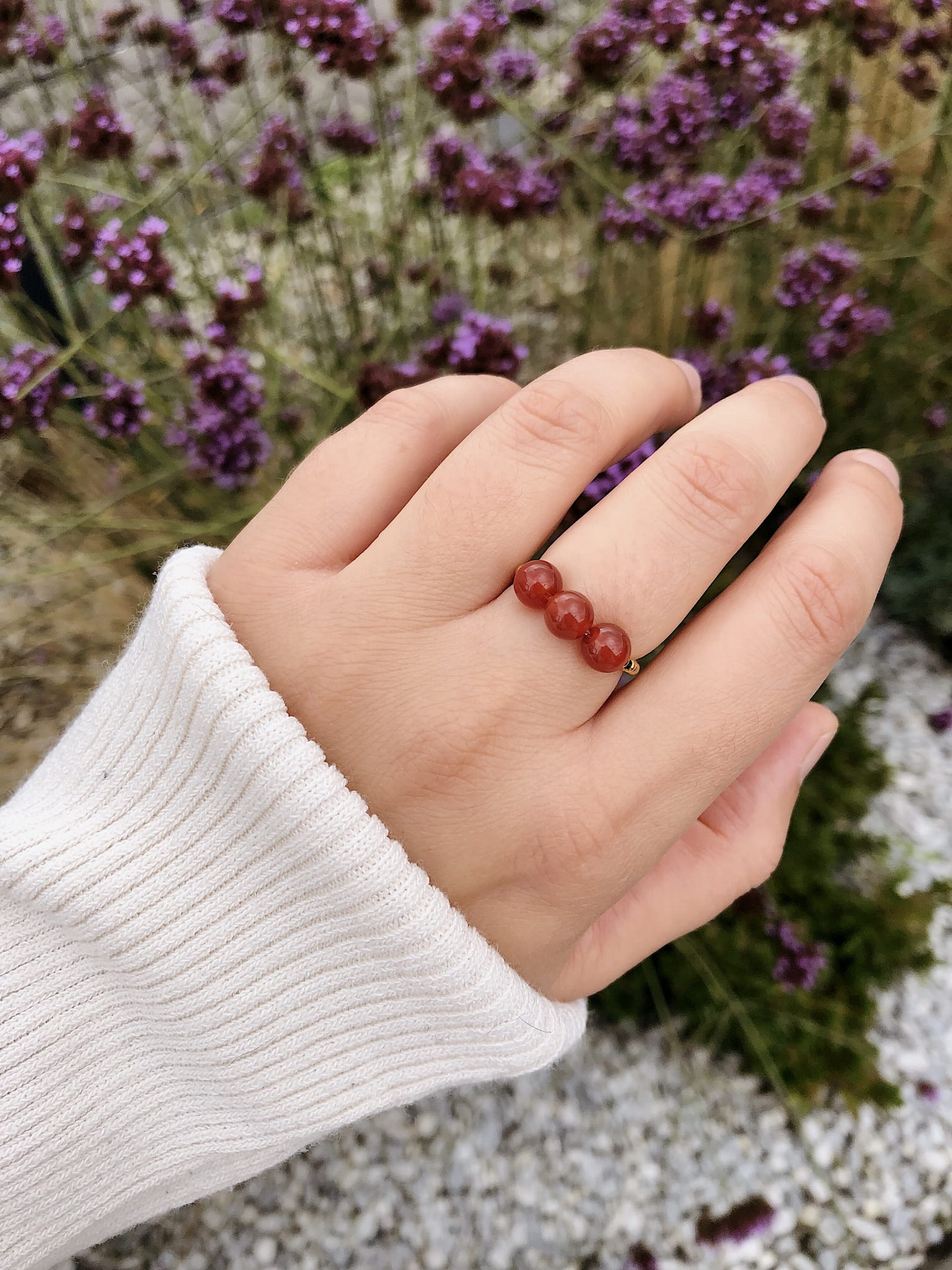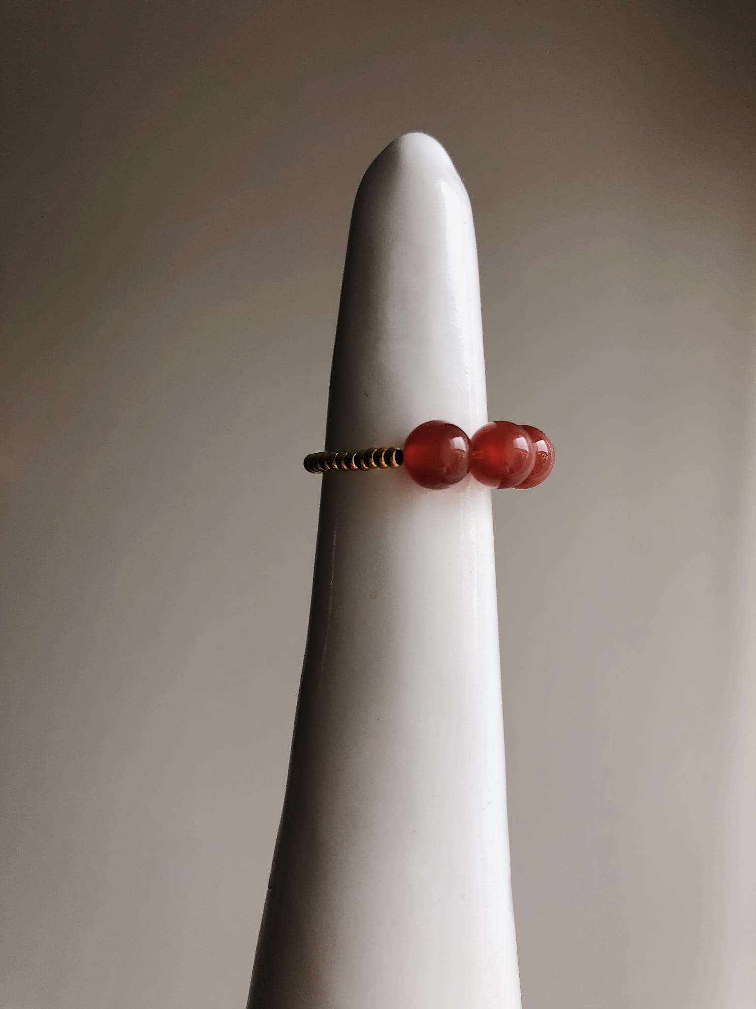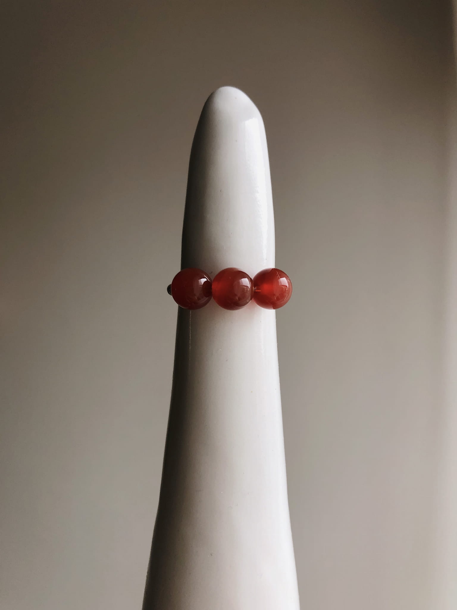 Jesienny pierścionek z kuleczek ze stali chirurgicznej, z dodatkiem trzech gładkich kuli agatu.