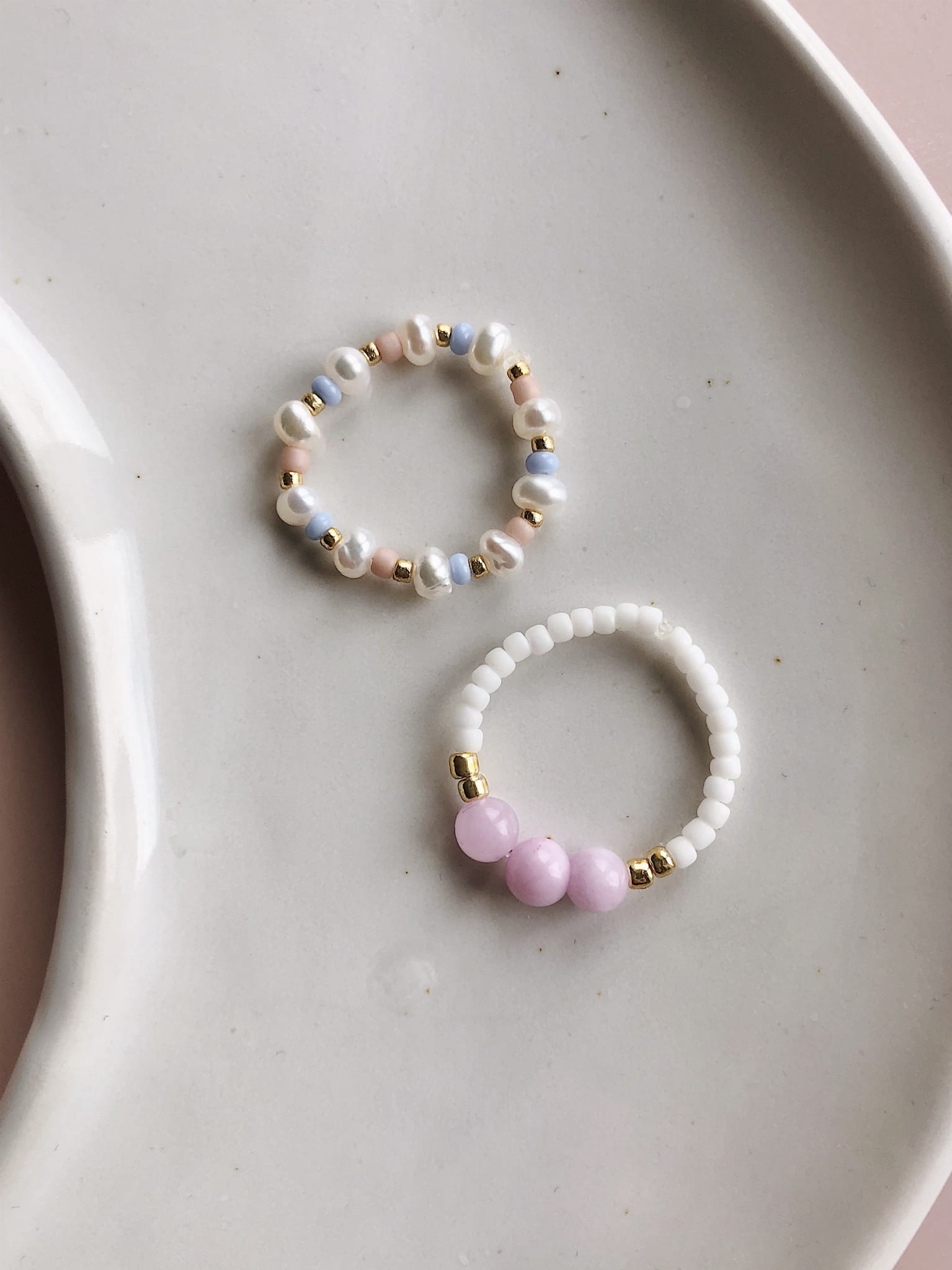 Pierścionek z pereł i koralików