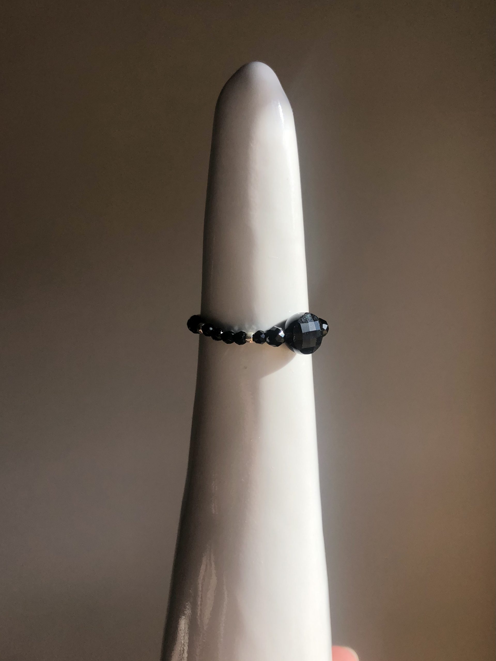 Pierścionek ze spinelu i onyksu, z dodatkiem koralików szklanych.