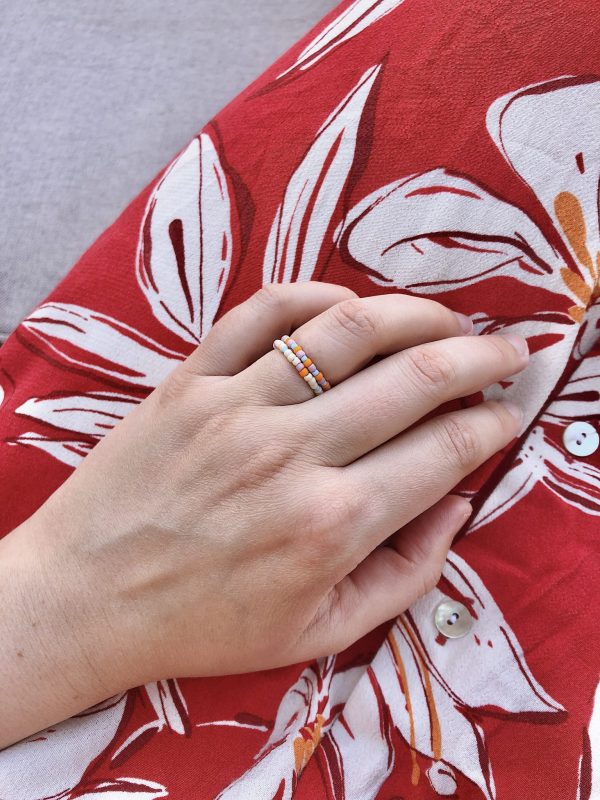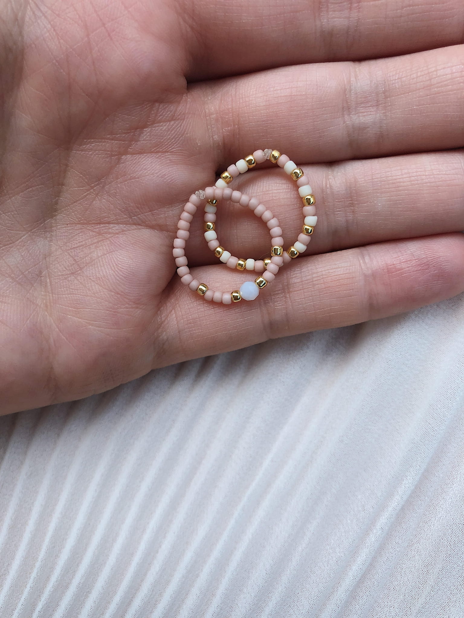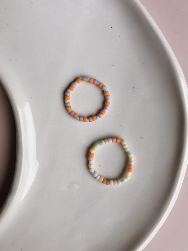 Dwa pierścionki May z koralików szklanych. Jeden z nich zdobiony kamyczkiem opalu.